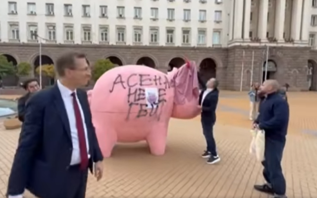 Представители на „ДПС-Ново начало“, водени от депутата Станислав Анастасов, надраскаха с графити фигурата „прасе-касичка“, която тази сутрин от ПП поставиха пред сградата на НС като форма на протест срещу проектобюджета за следващата година и определена като арт-инсталация.Видеото от акцията на „ДПС-Ново начало“ беше публикувано във фейсбук групата „Делян Пеевски – председател на ДПС“.На него се вижда как Анастасов пише с черен спрей, а друг активист на партията покрива с плат физиономията на розовото прасе: …