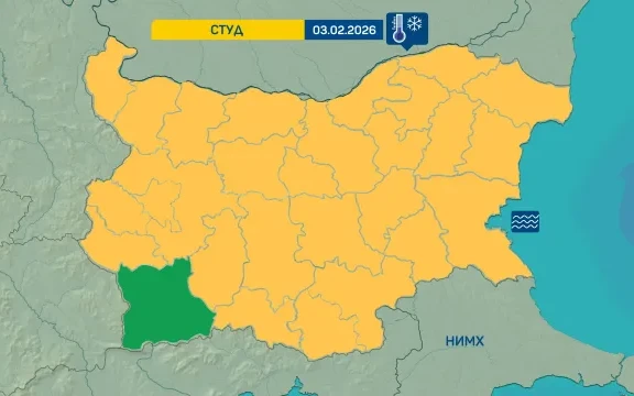 Жълт код за студено време е обявен във всички области от страна с изключение на област Благоевград. Минималните температури ще са между минус 14° и минус 9° и през деня стойностите ще се задържат под 0°. Жълт код за морско вълнение е обявен за районите южно от Бургас, където преди обед вълнението на морето ще бъде 4 бала.През нощта облачността над страната ще бъде значителна, временно намаляваща след полунощ, главно над източните райони….