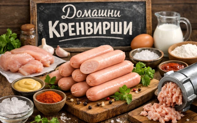 Домашните кренвирши са вкусна и по-здравословна алтернатива на готовите продукти от магазина. Когато ги приготвим сами, можем да изберем качествено месо, да контролираме подправките и да избегнем излишните консерванти. Макар процесът да изглежда сложен, с малко търпение и правилните продукти всеки може да приготви ароматни и съчни кренвирши у дома.Необходими продуктиЗа около 1 кг домашни кренвирши ще са ви нужни:700 г свинско месо (от плешка или бут)300 г телешко месо150 мл ледено студена вода18–20 г сол1 ч….